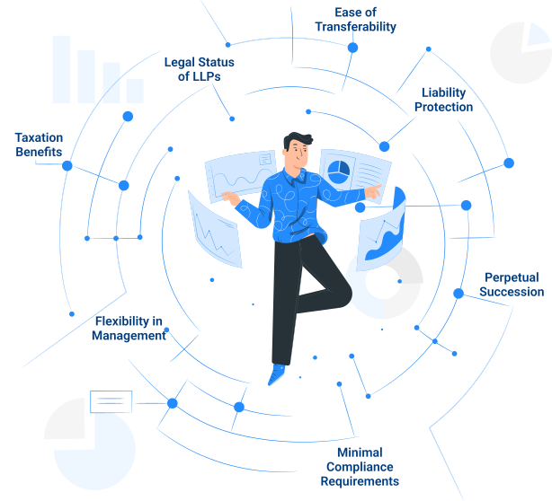 Benefits of LLP registration include limited liability protection, flexibility in management, tax advantages, and ease of compliance with regulatory requirements. Here are few benefits: